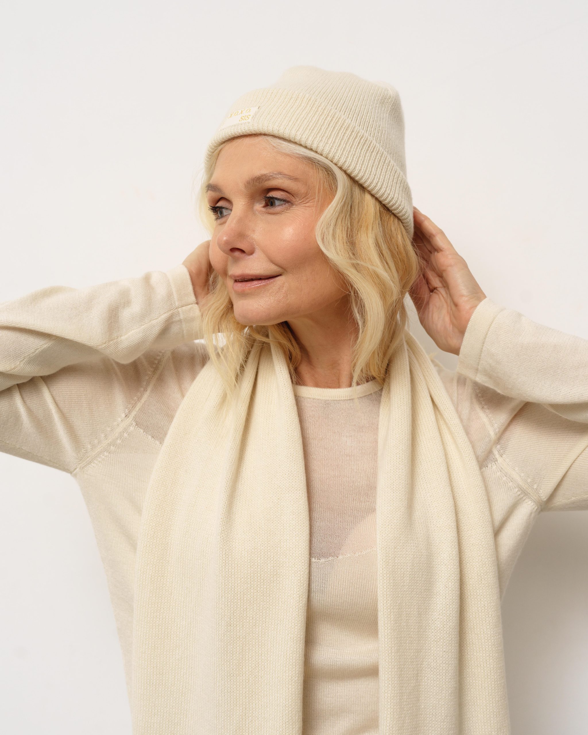 Кашеміровий шарф зі 100% бебі кашеміру Loro Piana зі шкіряною нашивкою.