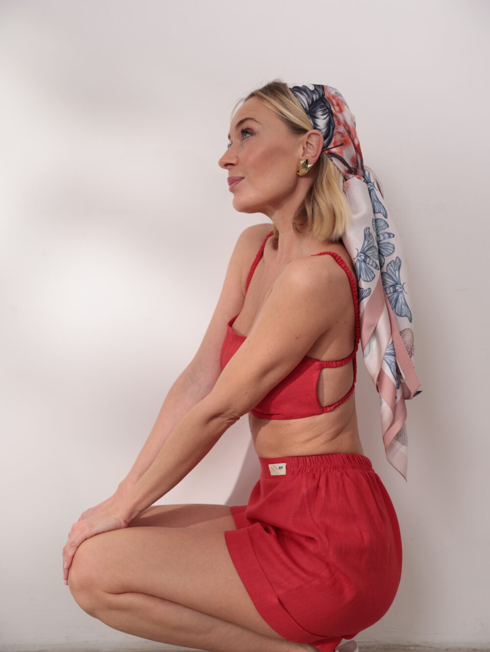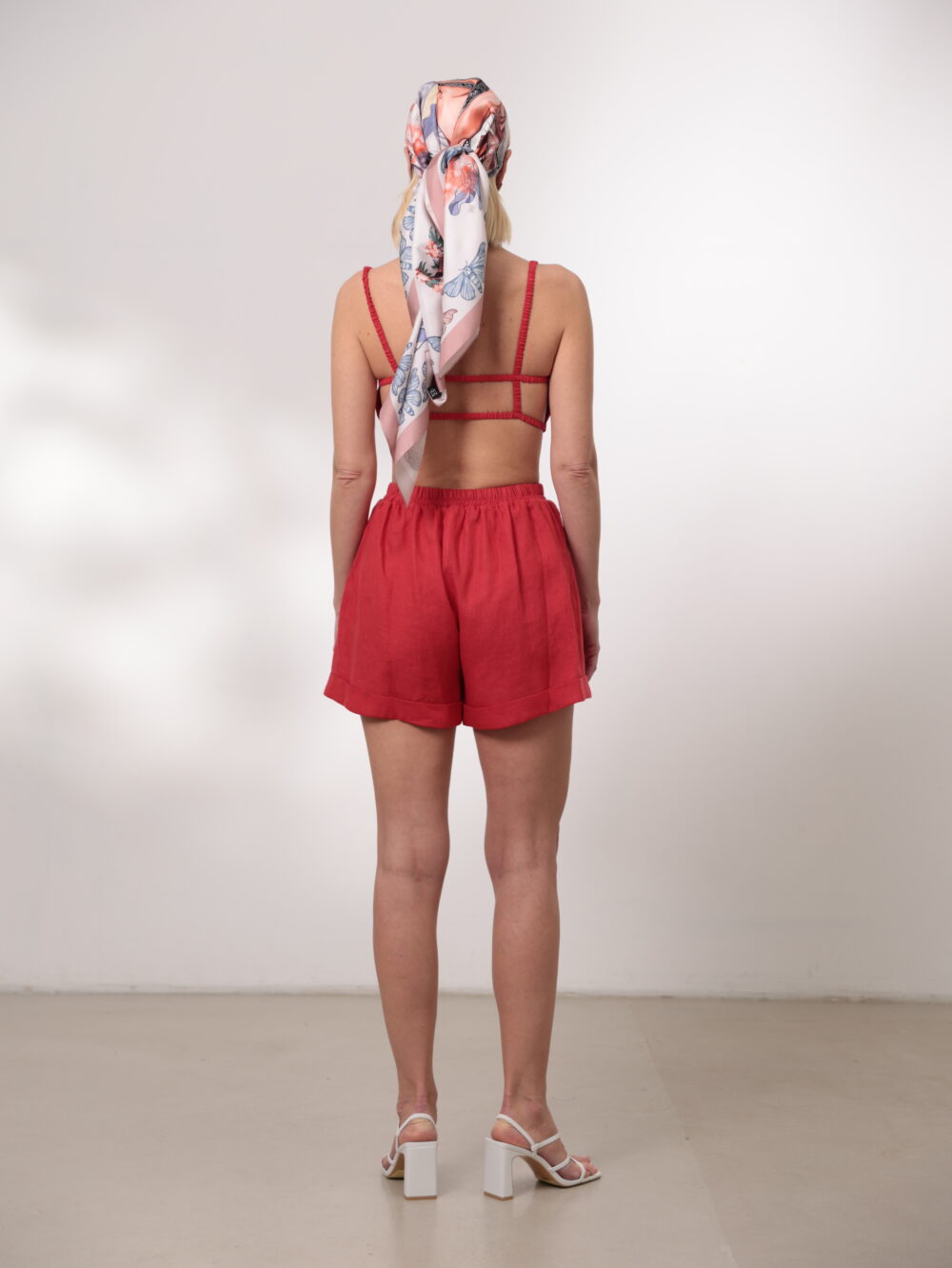 Лляний комплект з топу на резинових з кісточкою та шорт.