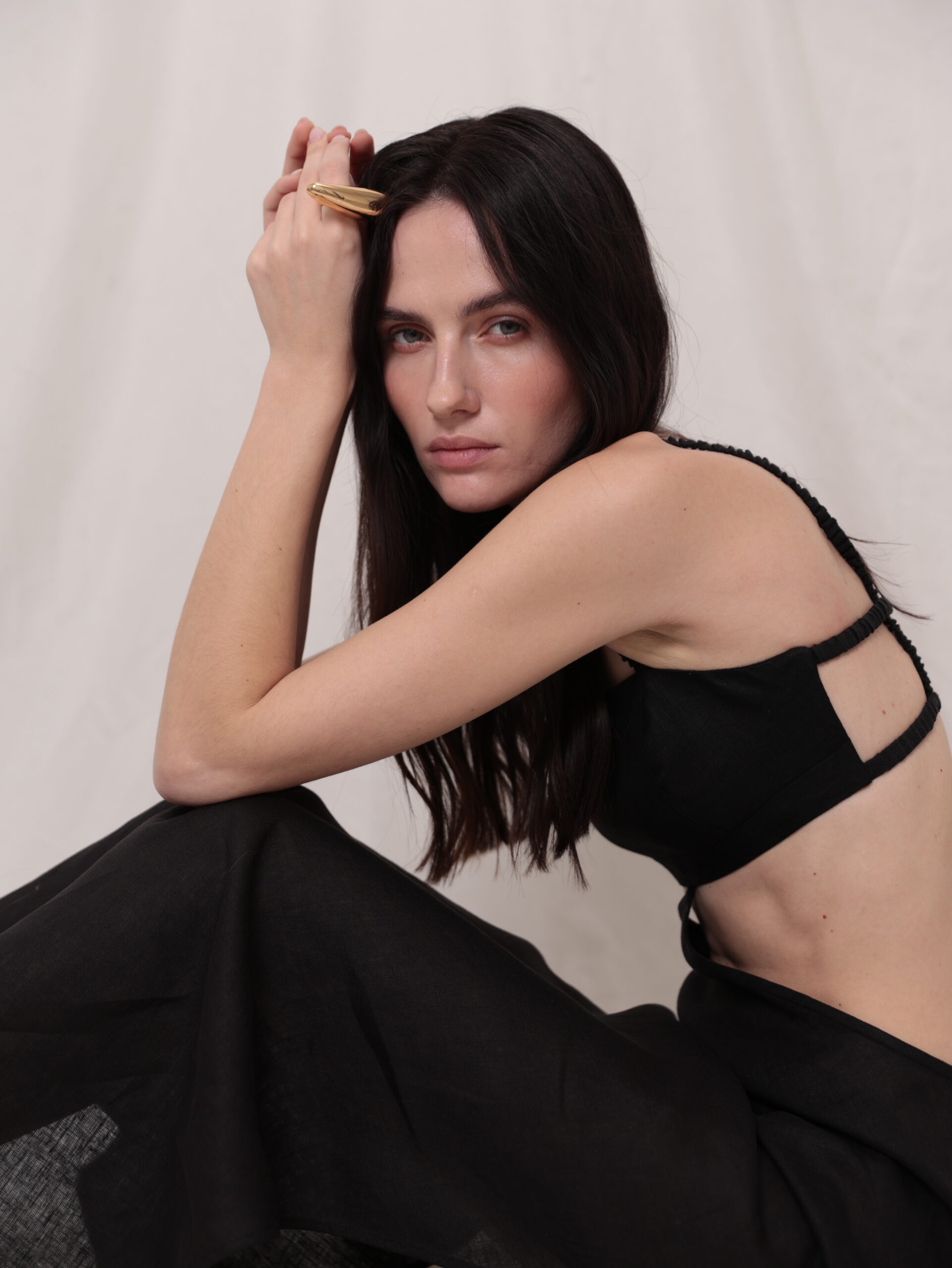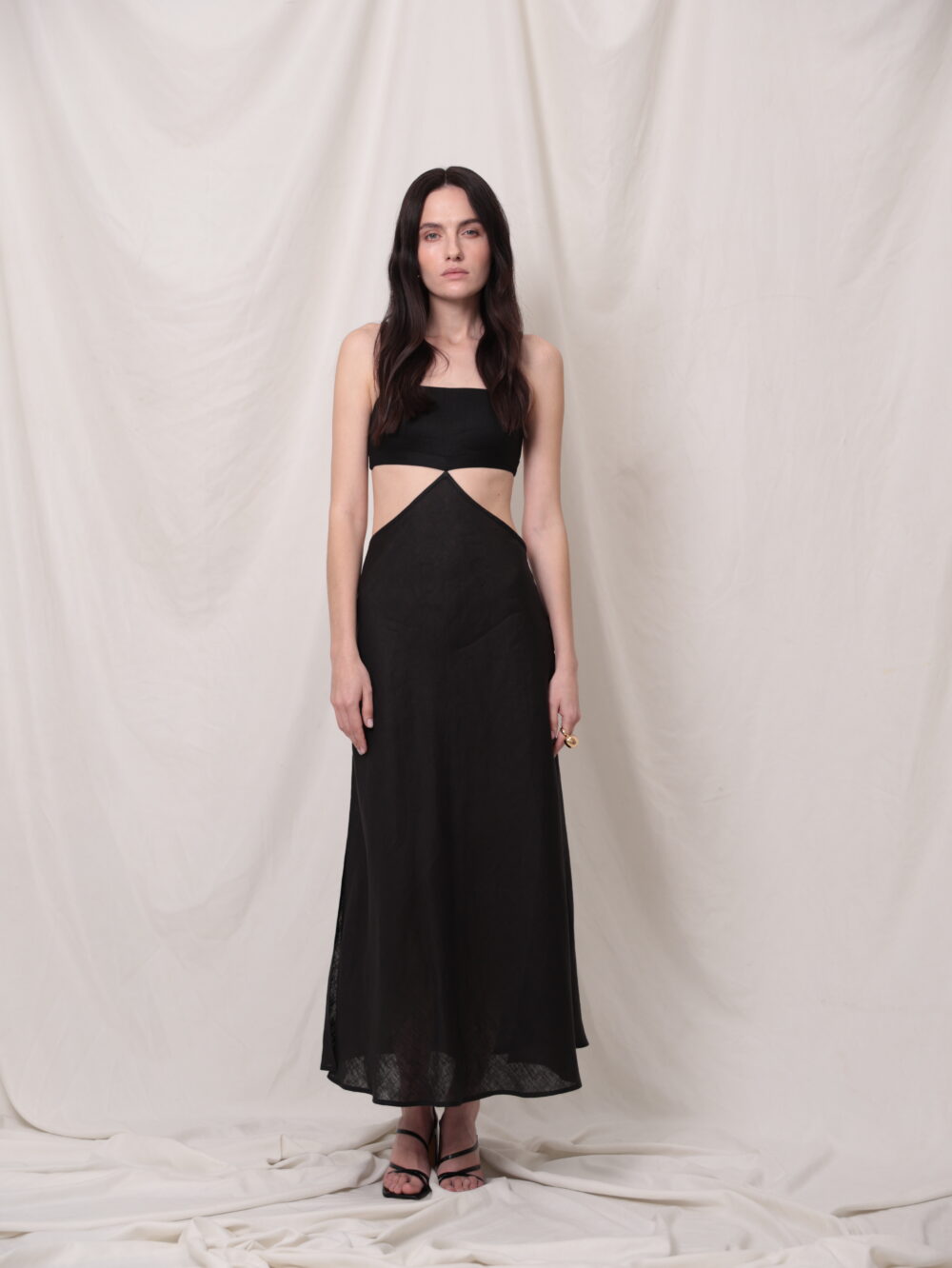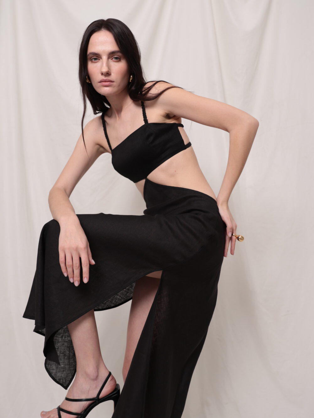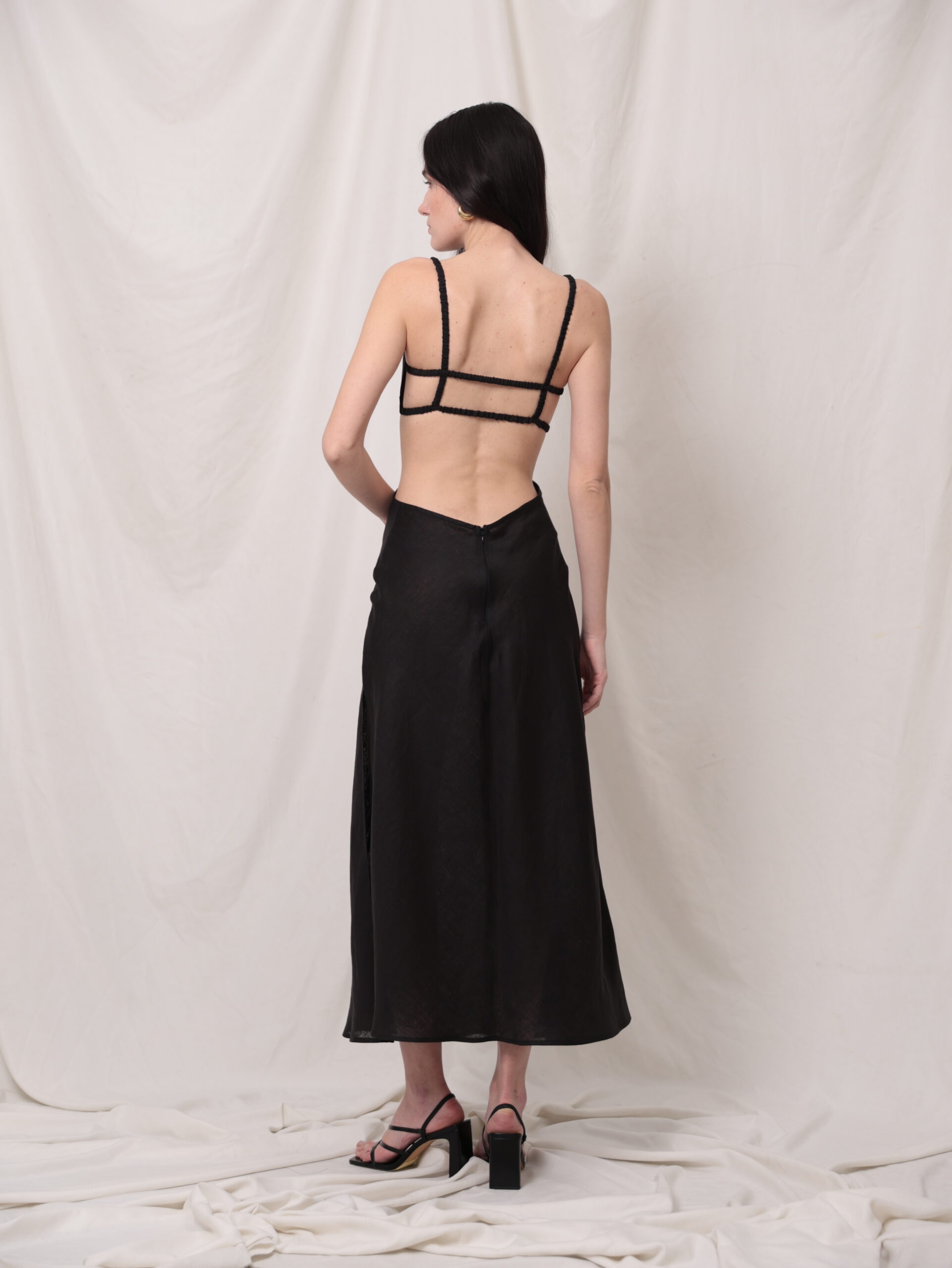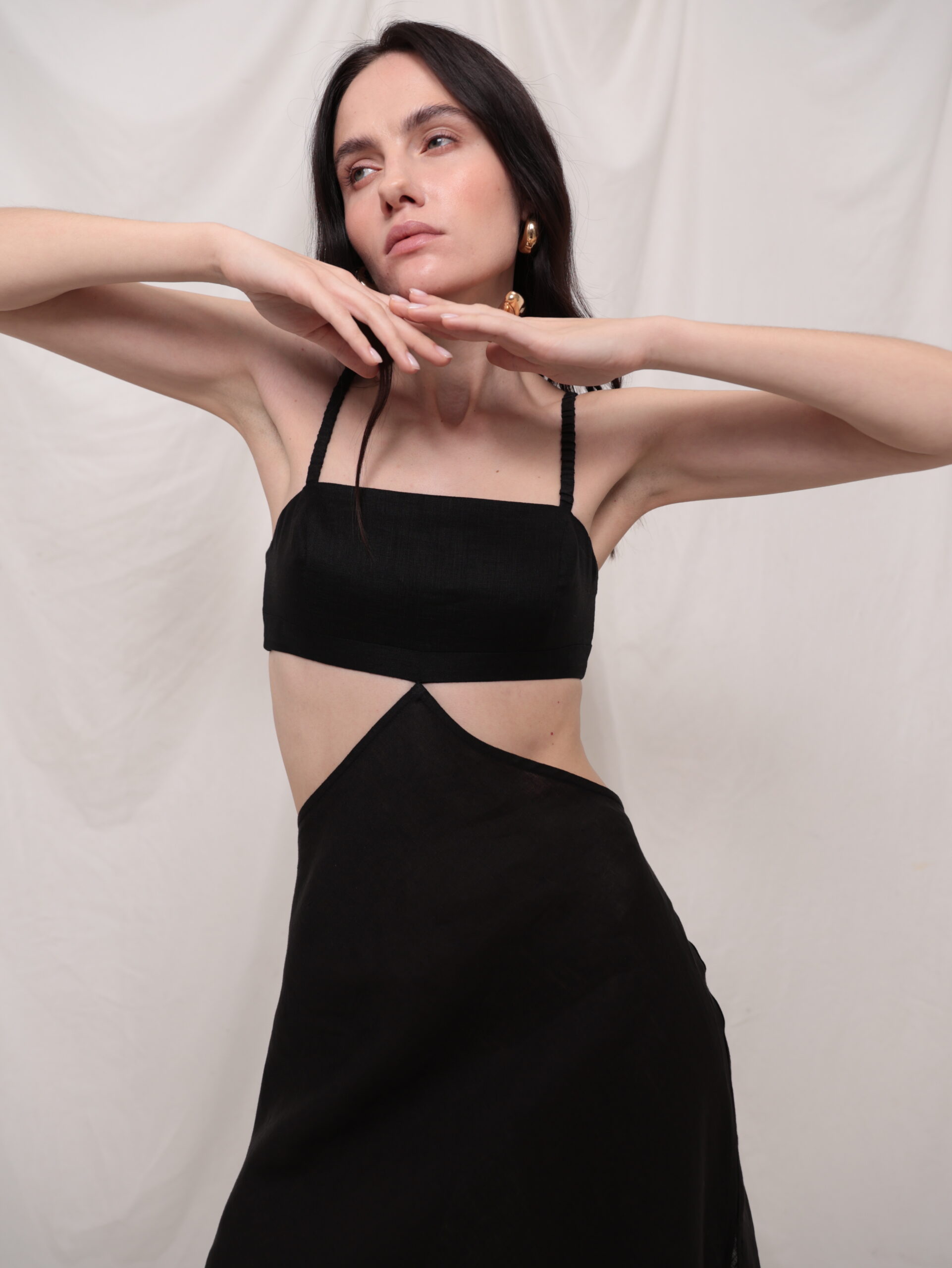Лляний апсайклінг сарафан з вирізами на талії. Топ на резиночках.