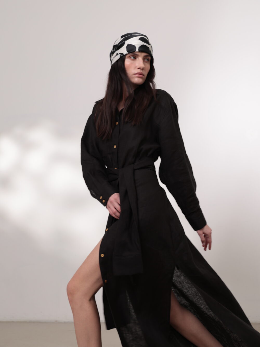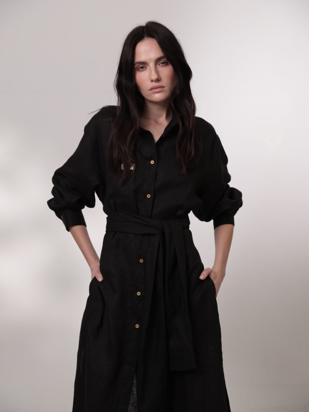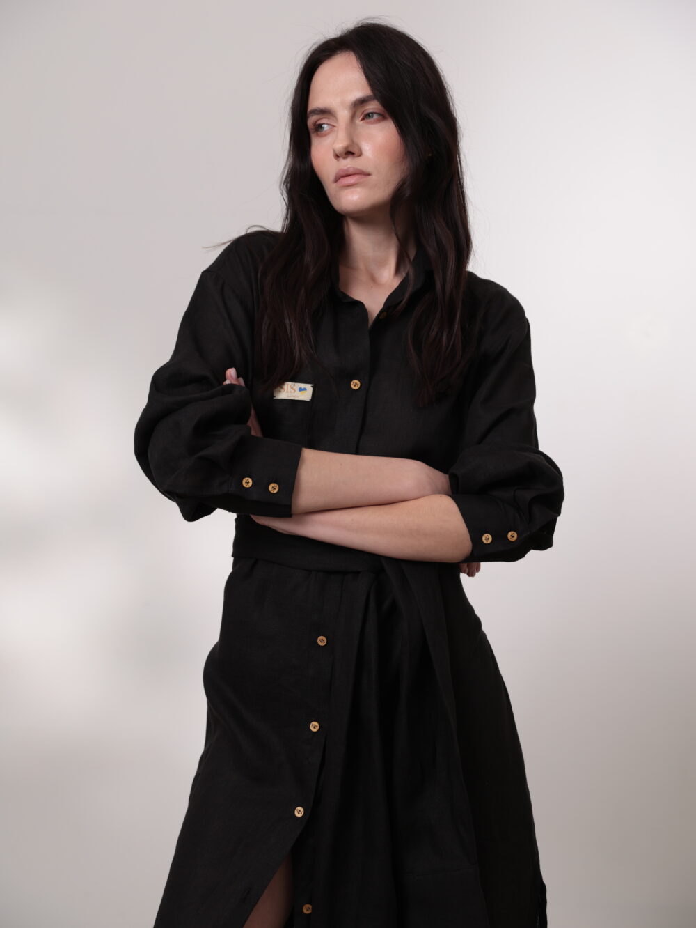 Лляна розкішна апсайклінг сукня з поясом із рукавів.
