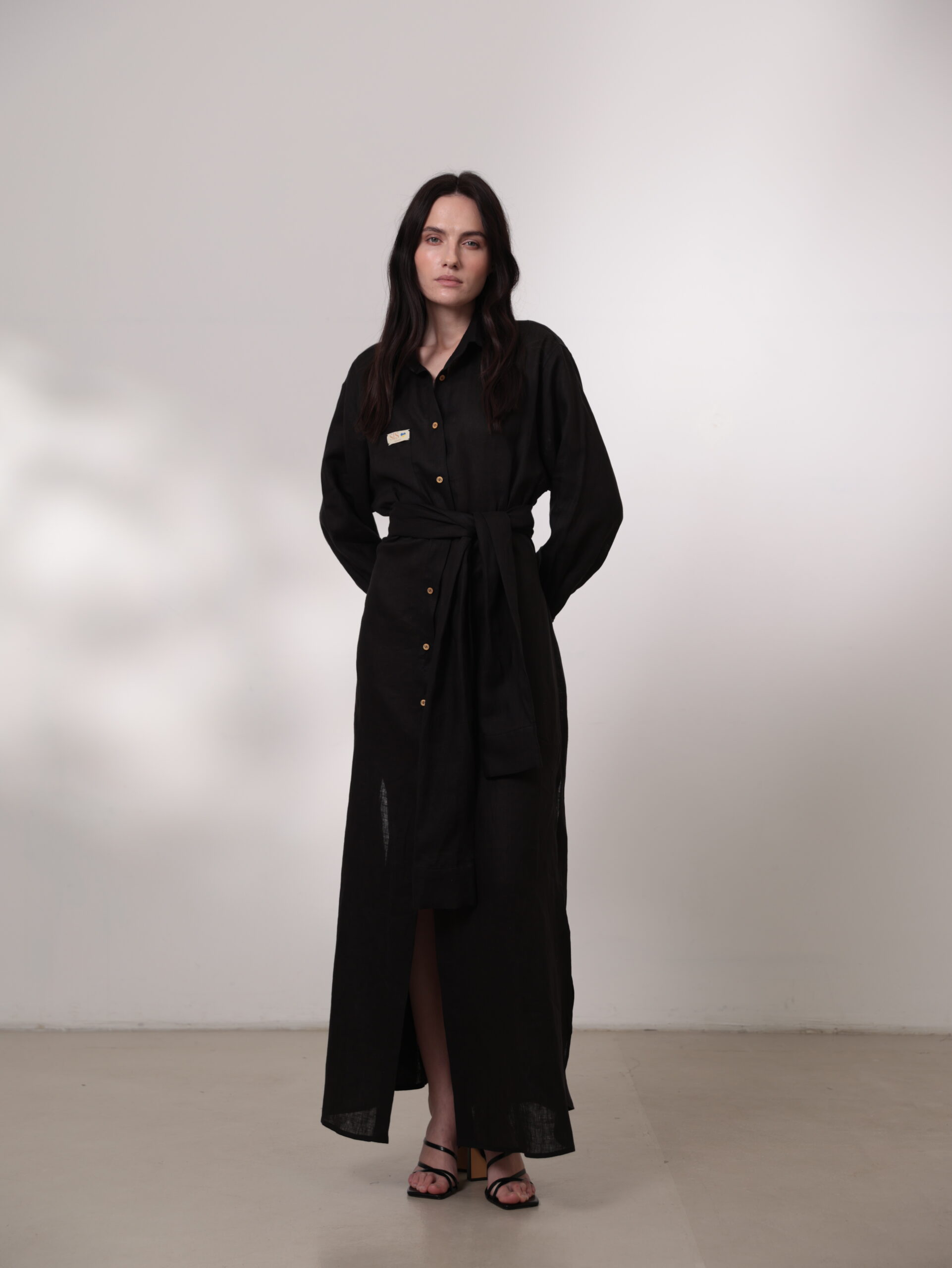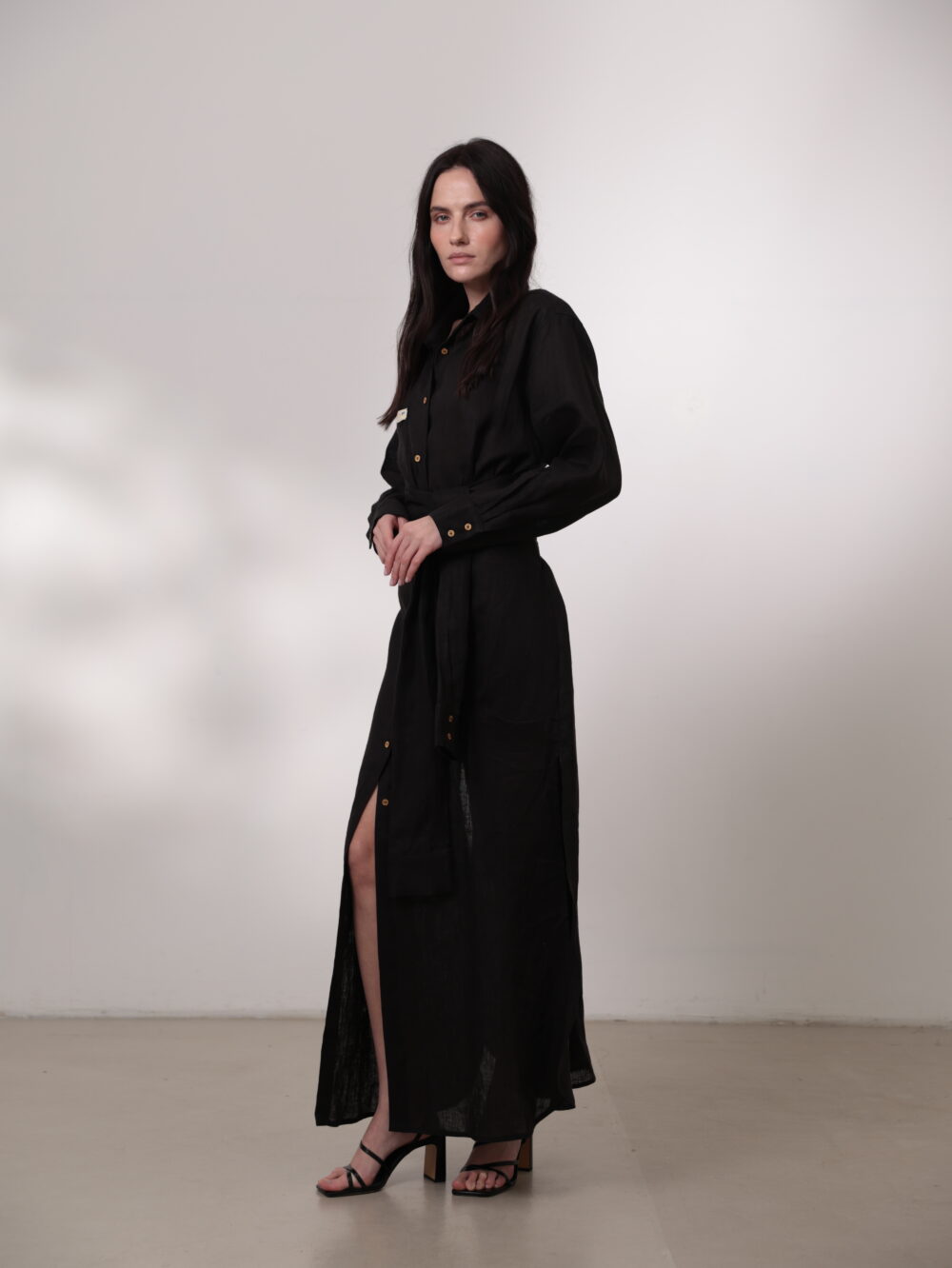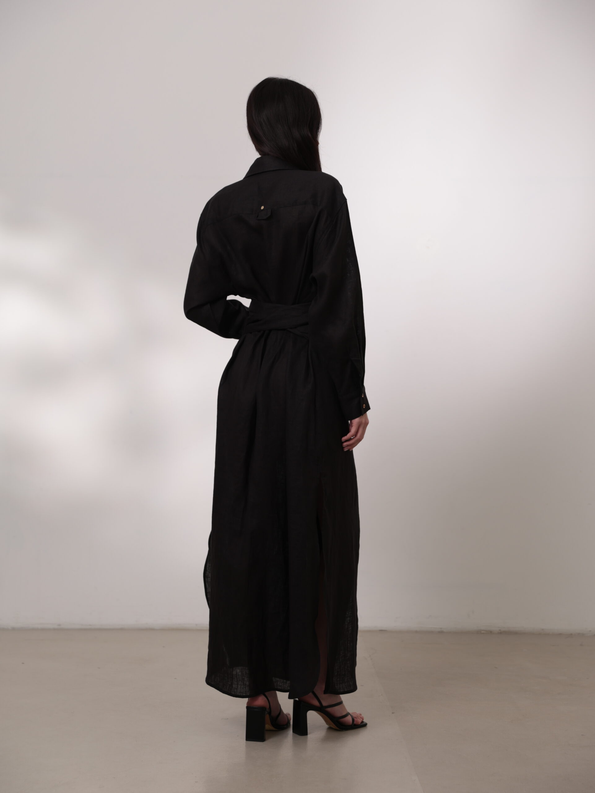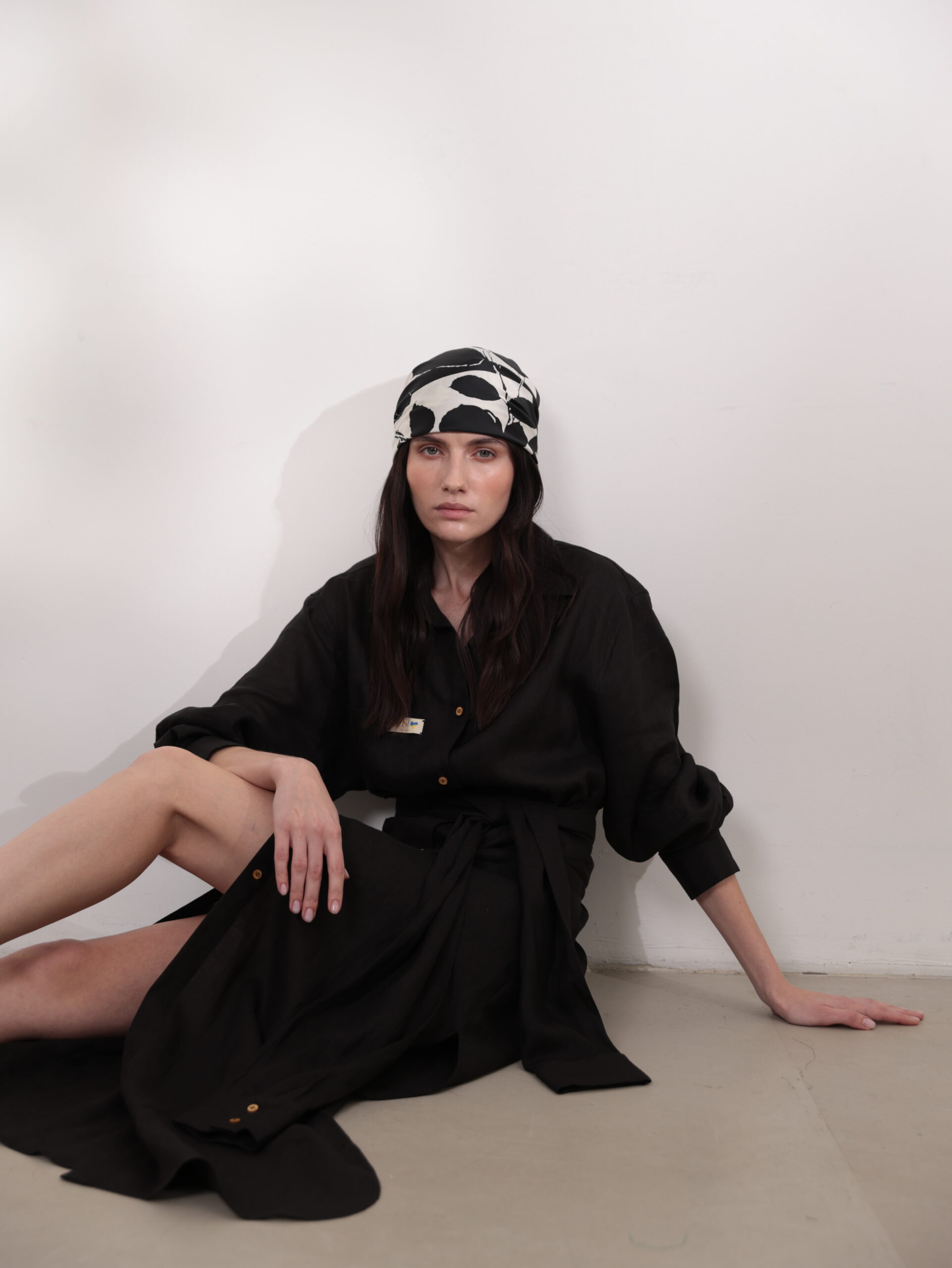 Лляна розкішна апсайклінг сукня з поясом із рукавів.
