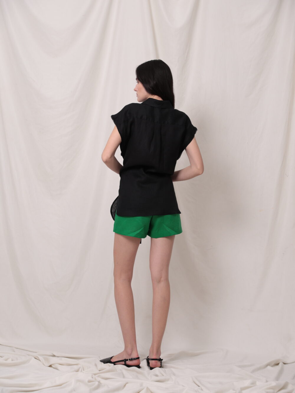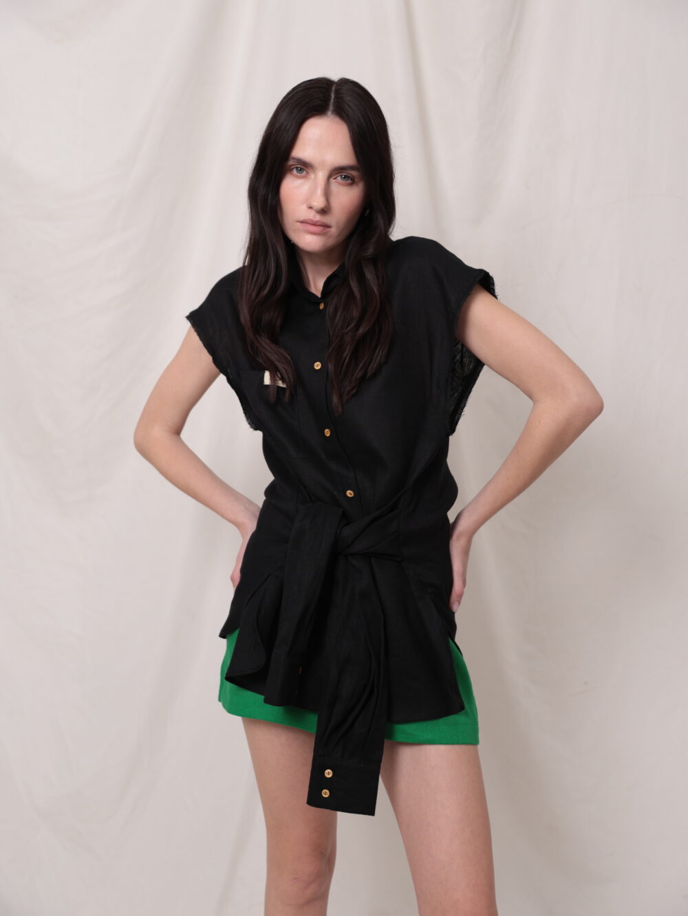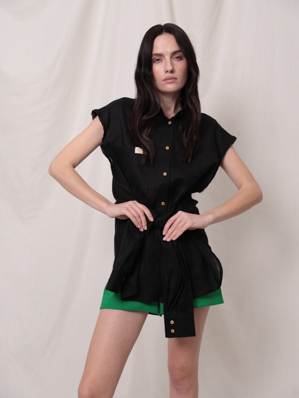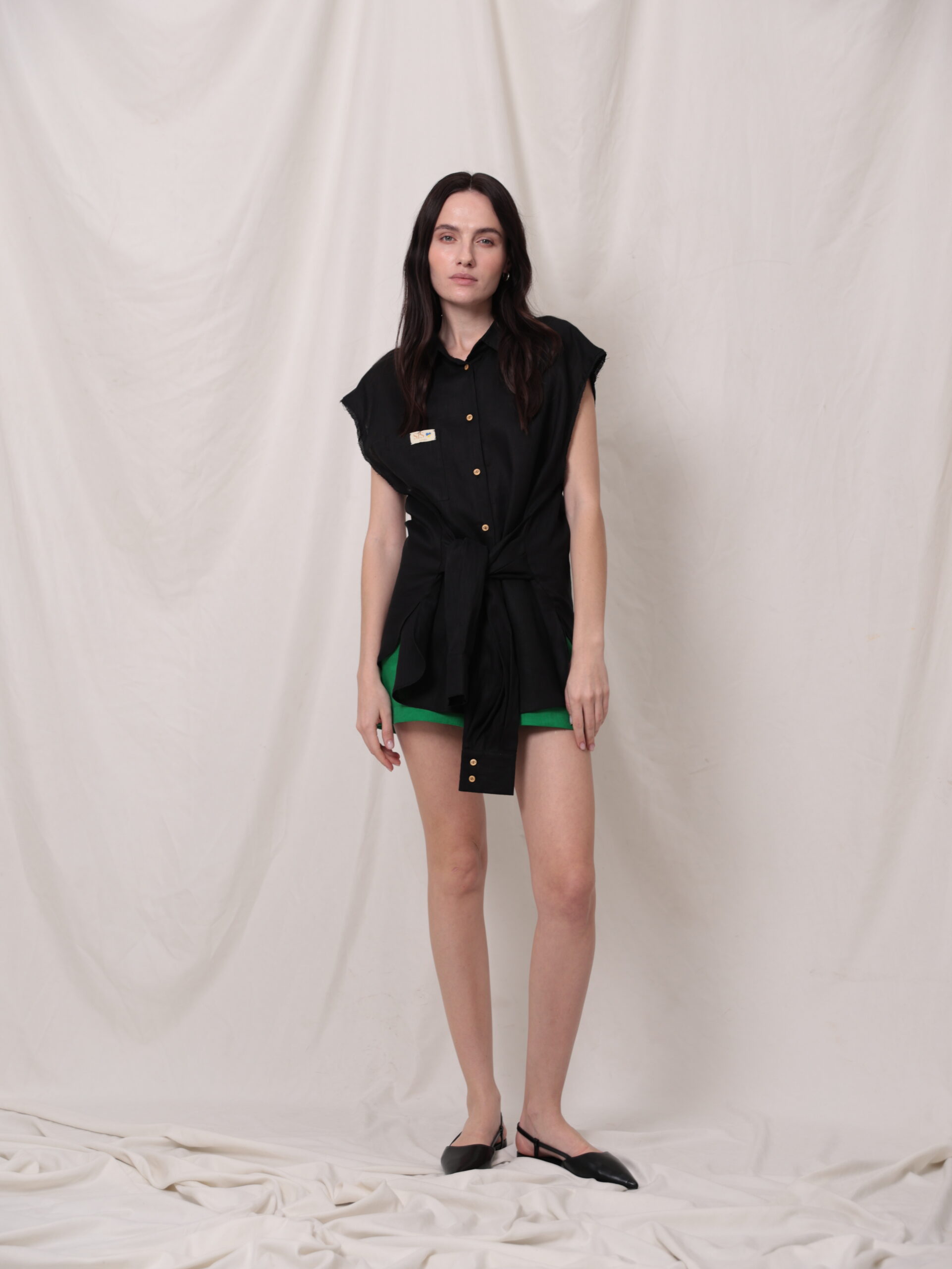 Лляний апсайклінг жилет з поясом із рукавів.